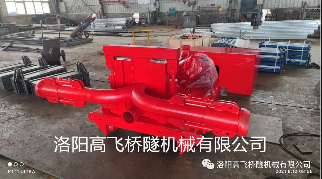 臺(tái)車(chē)配置一套混凝土分層澆筑布料系統(tǒng),實(shí)現(xiàn)了混凝土逐窗分層澆筑,設(shè)備可實(shí)現(xiàn)兩側(cè)和拱頂布料,每層四個(gè)入料點(diǎn),進(jìn)一步提高襯砌施工效率和質(zhì)量。臺(tái)車(chē)布料系統(tǒng)不需要人工拆管、接管、換管和清洗,僅需一名操作人員輕松操作遙控器,即可實(shí)現(xiàn)分層逐窗澆筑。
