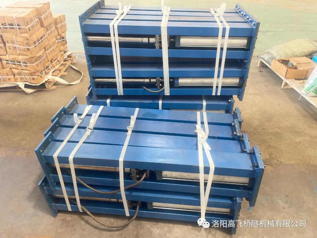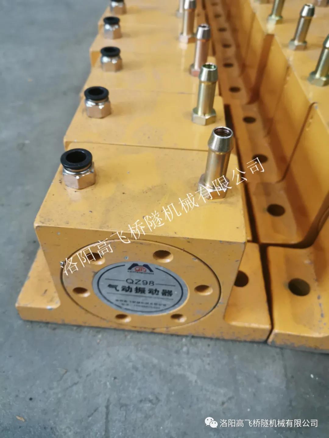 臺(tái)車(chē)配置8個(gè)插入式和32個(gè)附著式高頻自動(dòng)振搗系統(tǒng),通過(guò)高壓氣體帶動(dòng)高頻氣動(dòng)振搗器工作,作業(yè)人員可通過(guò)PLC 程序控制持續(xù)振搗時(shí)間、間隔時(shí)間、振動(dòng)次數(shù)。拱部插入式振搗系統(tǒng)通過(guò)插入式高頻振動(dòng)器的往復(fù)運(yùn)動(dòng),對(duì)拱部混凝土深部進(jìn)行充分振搗,實(shí)現(xiàn)環(huán)向、縱向及厚度方向的振搗全覆蓋,有效提升混凝土強(qiáng)度和密實(shí)度,可以從根本上解決隧道拱頂混凝土不密實(shí)導(dǎo)致脫空和空洞的難題。高頻氣動(dòng)振動(dòng)器,振動(dòng)范圍廣、深度大,使混凝土振搗密實(shí),整體提升隧道襯砌外觀質(zhì)量。